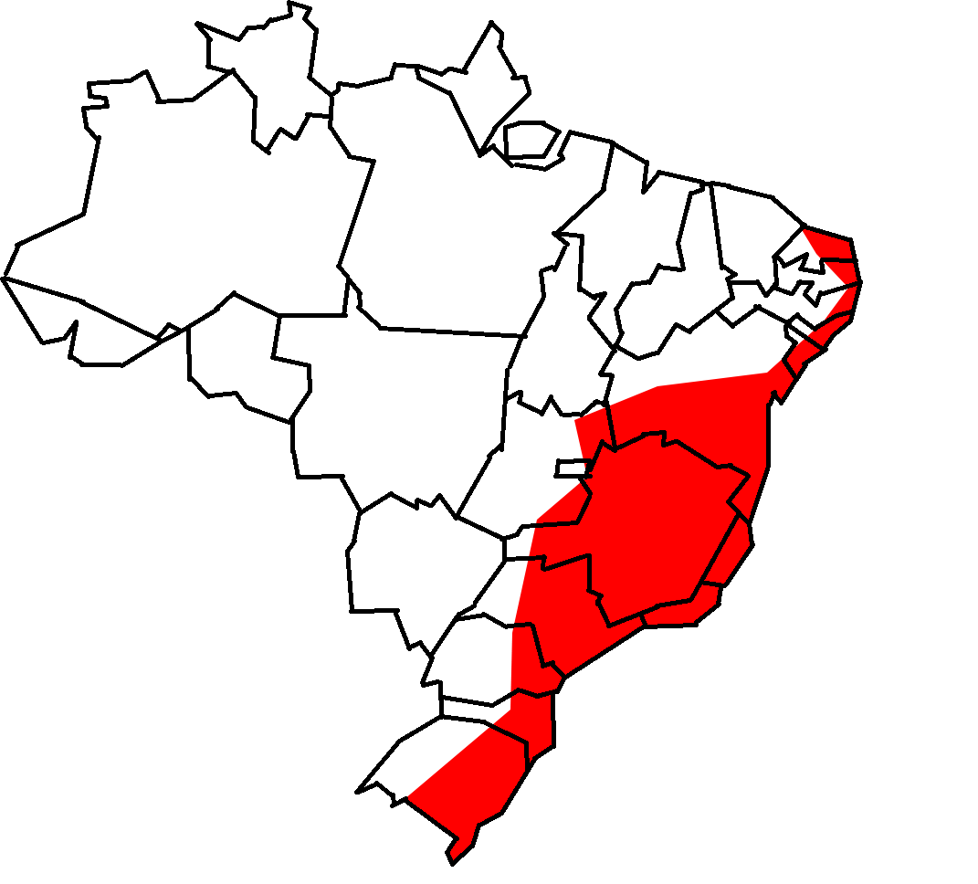 Distribuição geográfica: Sul, Sudeste e Nordeste do Brasil, além do Paraguai, Bolívia e Argentina