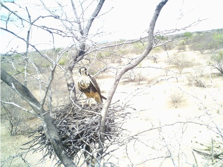 Gavião-carijó em seu ninho. Disponível em: https://fatosefotosdacaatinga.blogspot.com/2016/09/a-reproducao-do-gaviao-carijo-na.html