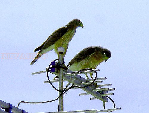 Casal de Gavião carijó em uma antena. Disponível em: https://www.flickr.com/photos/nivardo_nepomuceno/3877390037