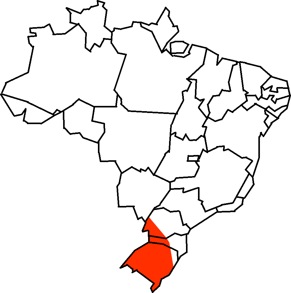 Distribuição geográfica: Sul do Brasil, Argentina, Paraguai, Uruguai, Bolívia e Chile