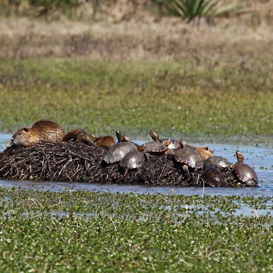 Imagem de ratões-do-banhado sobre plataformas de juncos. Disponível em https://www.dreamstime.com/photos-images/sleeping-nutria.html