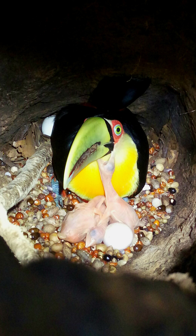 Tucano-de-bico-verde com seus filhotes. Disponível em https://www.wikiaves.com.br/3575334&t=s&s=10734&tag=FOTOFILHOTE